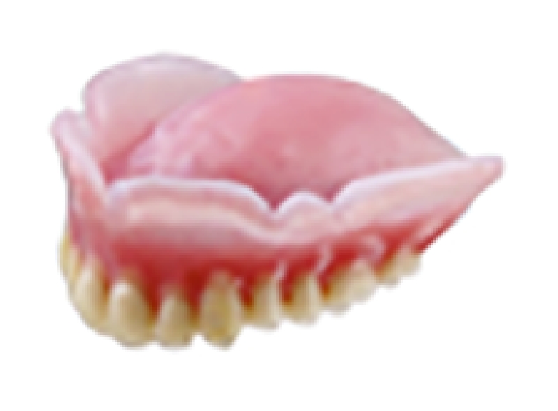 通常のレジン樹脂と軟性樹脂との2種類の材料で構成された入れ歯です。内面に軟らかい素材が裏打ちされているので、歯肉にやさしく、痛みの少ない点が特徴です。